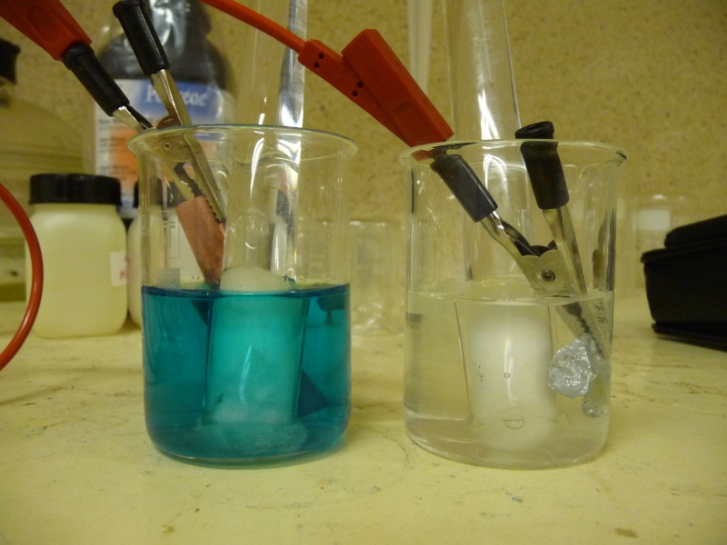 Es interesante dejar la pila en cortocircuito durante horas hasta que "se gaste" y observar la decoloración de la disolución