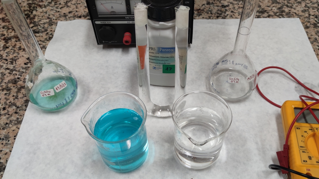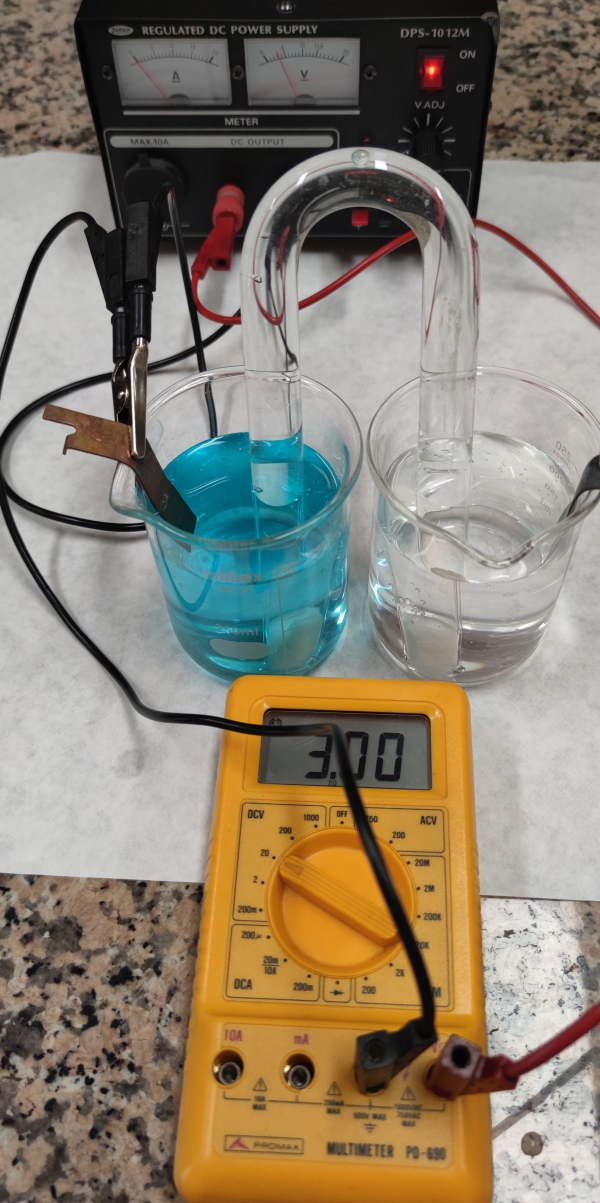 El montaje de esta práctica es practicamente igual al de las celdas electrolíticas y conviene hacer ambos trabajos juntos.