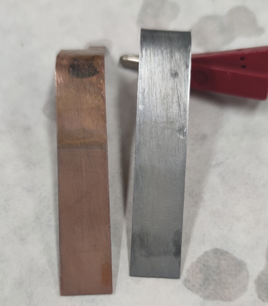 mientras que el electrodo de cinc la gana, quedando más brillante.