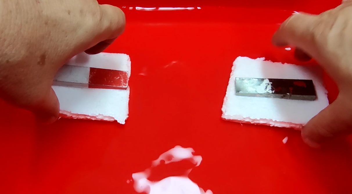 Es interesante hacerles ver cómo un imán flotante se alinea en dirección norte-sur y que esto se debe a la interacción de dos imanes,