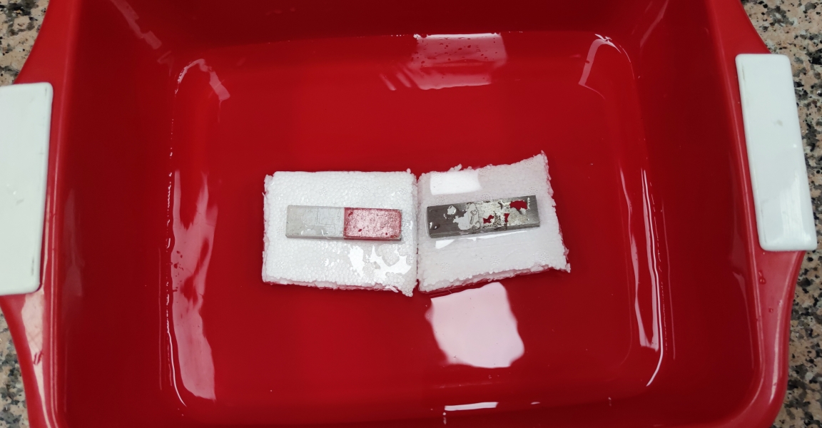 - Observar que las fuerzas magnéticas de atracción aparecen por igual sobre el material imantado (imán) como