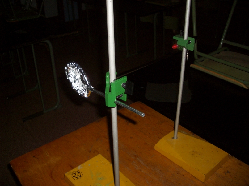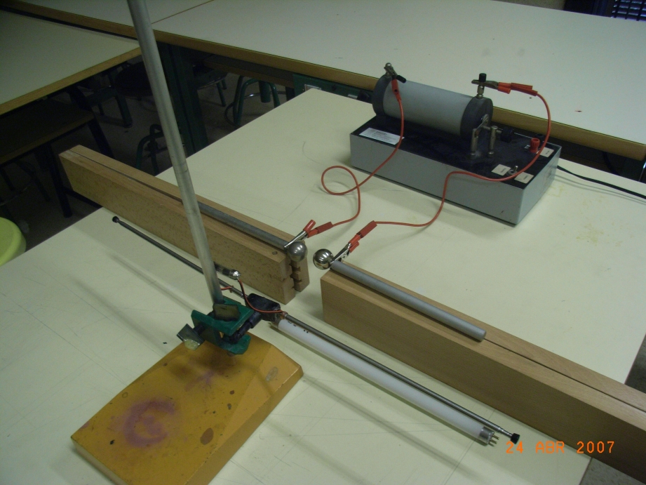 Este experimento reproduce parcialmente uno de los experimentos que hizo Heinrich Hertz en 1855. Hertz utilizó una fuente de alta tensión