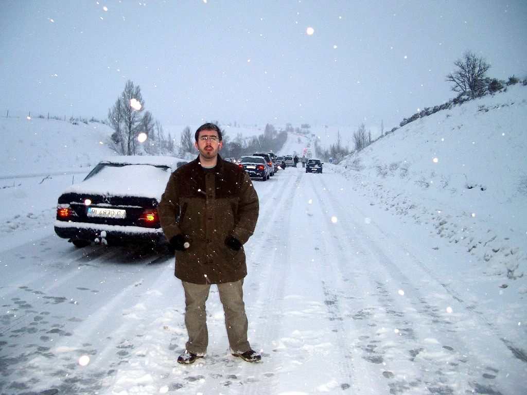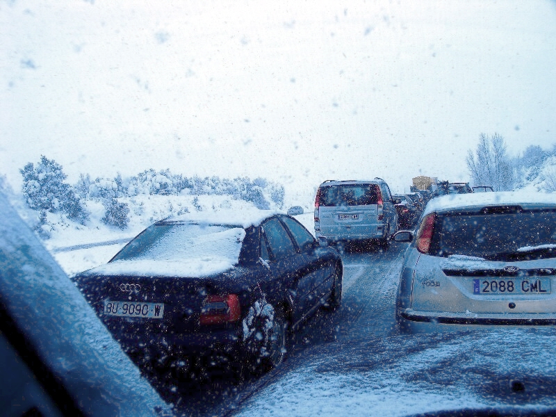 pero el otro coche se quedó atrapado en el atasco que se formó después de Lerma, lleno de coches que no llevaban cadenas